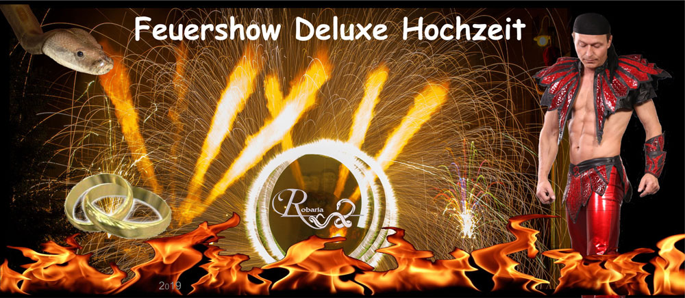 Die große Feuershow Deluxe ist ein "Rund um Sorglos Paket". In diesem Paket ist nicht nur eine große exrtavagante Feuershow. Alle Spezialeffekte, die Pavilions zur wetterfesten Feuershow und die Licht- und Lasereffekte sind alle inklusive im Showpaket enthalen. Die Schlangenshow ist auf persönlichen Wunsch ebenfalls mit dabei.